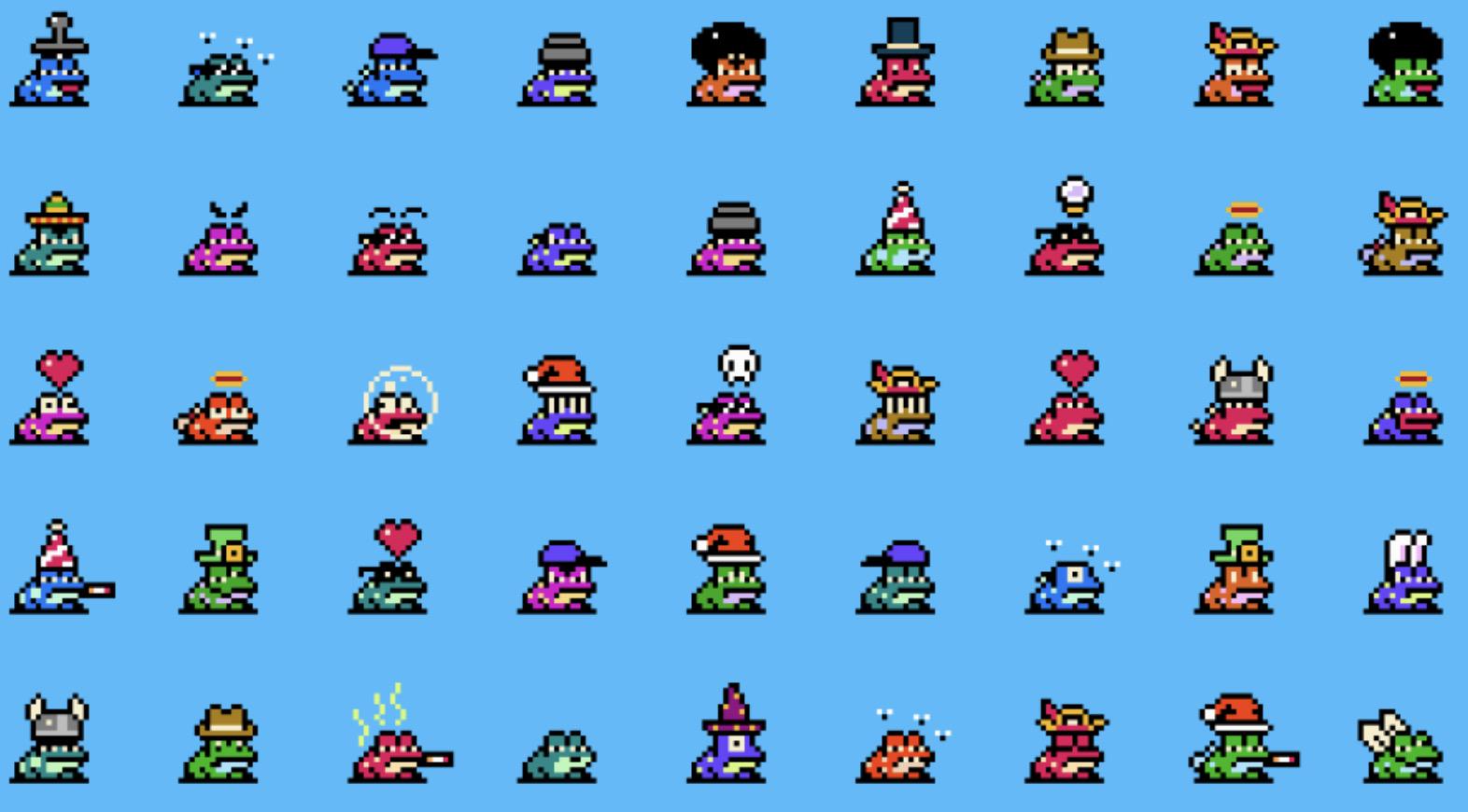 Tiny Based Frogs 是 Base 上首个 100% 完全链上的动态 NFT 系列, 于 2023 年 7 月发布,总量为 999 个。该 NFT 的生成艺术家@dailofrog 曾发布 Ordinals 系列 Memory Blocks 以及 Blast NFT 项目 Blast Rocks。OpenSea 数据显示,截至 4 月 8 日,Tiny Based Frogs 的地板价达 0.409 ETH,总交易量达 246 ETH。