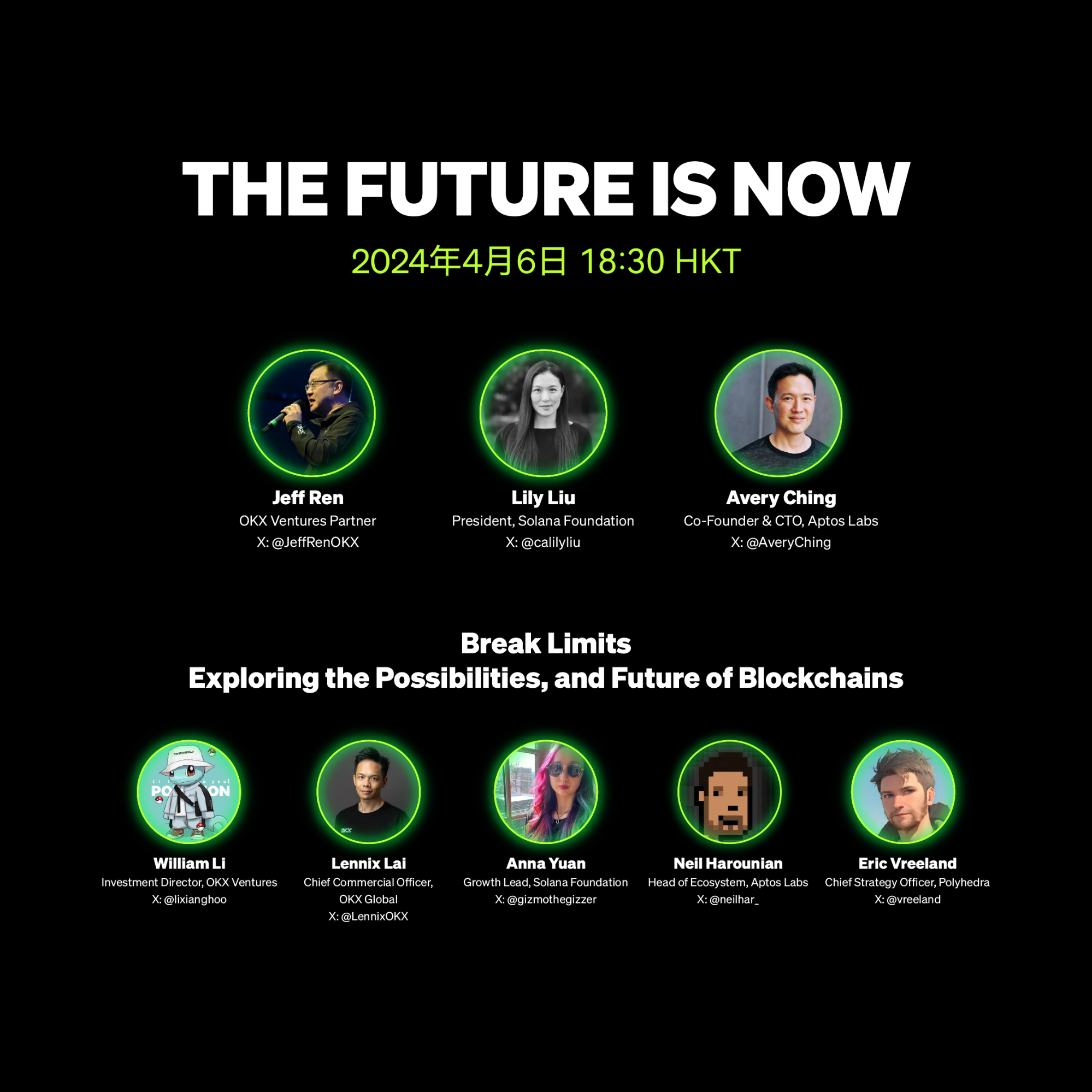 4 月 6 日, OKX Web3 于香港 Web3 嘉年华期间举办的 The future is now 主题活动圆满收官,OKX Ventures 合伙人 Jeff Ren、Solana 基金会主席 Lily Liu、Aptos Labs 共同创办人兼 CTO Avery Ching 以及 OKX Global 首席商务官 Lennix 以及 PolyhedraZK 首席𢧐略官 Eric Vreeland、Solana 基金会增长负责人 Anna Yuan、Aptos Labs 生态负责人 Neil Harounian 等嘉宾出席了本次活动。