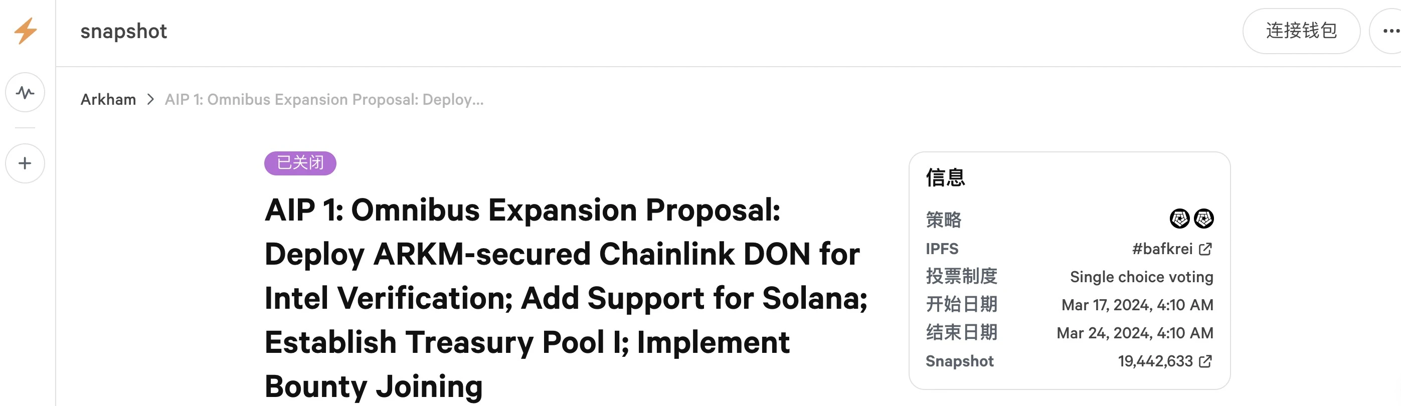 Odaily星球日报查证后发现,该提案确实存在,并且于 3 月 24 日正式投票通过。该提案要求 用基金会金库中的 2000 万枚 ARKM 建立资金池 I,由 Arkham 基金会管理,并酌情分配 ARKM,包括支持开发工作、支持早期加密项目、激励情报收集以及支持增长计划,例如在体育和媒体领域的合作伙伴关系、推动网络的扩展。