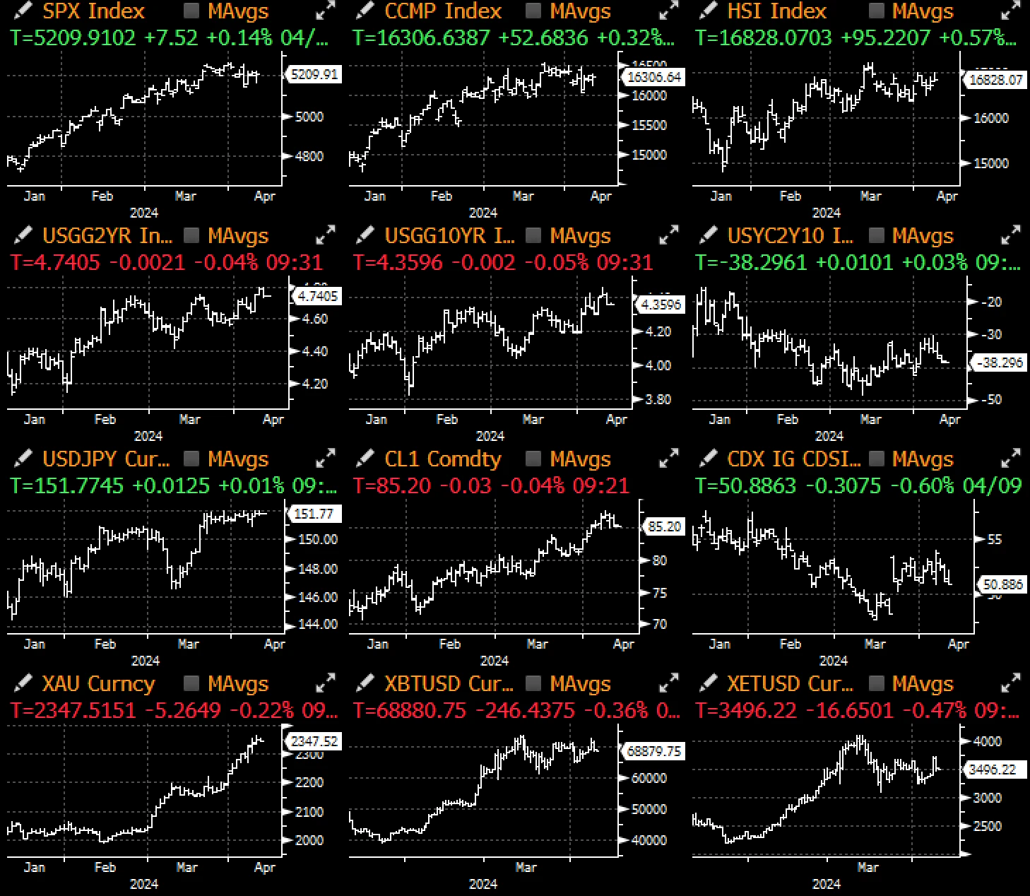 许多资产类别的价格目前都处于重要技术水平附近,SPX 指数徘徊并守住 200 日均线, 2 年期收益率持稳在今年高点 4.80 % 左右,而随著日本央行近期重申鹰派评论(UEDA:希望最终削减日本国债持有量),美元兑日元也保持在 152 左右的两年高点附近。虽然我们对 CPI 数据没有特别的看法,但我们认为交易员目前应该都已经充分对冲,且众多资产类别同时突破重要技术水平的情况很少见,因此我们比较倾向认为数据结果将足够接近市场预测,使得资产得以维持当前趋势。让我们看看 12 小时后的市场情况,祝各位好运!