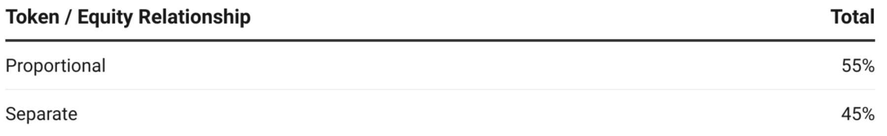 大多数公司提供的代币与股权成比例(这可能表明他们使用的是下文将介绍的「代币比例」计算方法)。