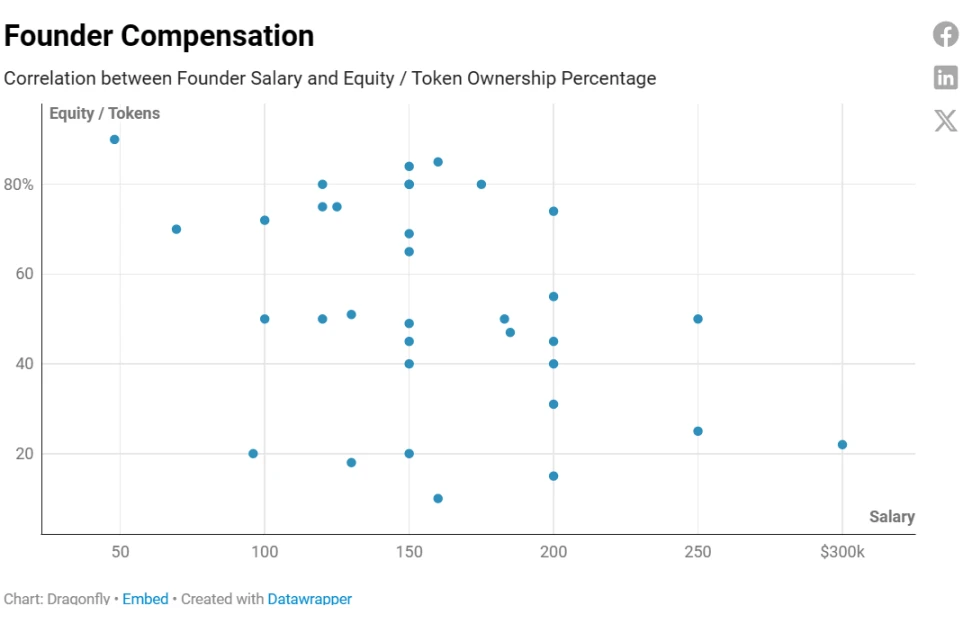 创始人持股:创始人薪酬部分主要针对所拥有的股权 / 代币的百分比,且没有区分两者;