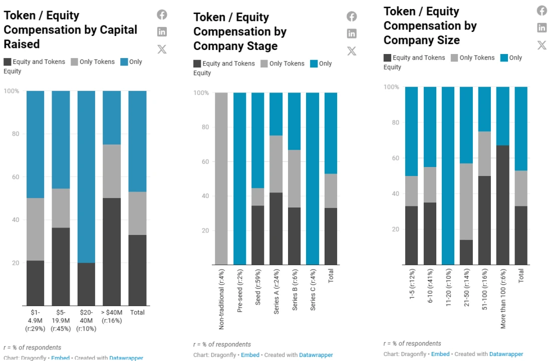 其次,随着员工人数的增长,公司通常更倾向于同时提供股权和代币激励。