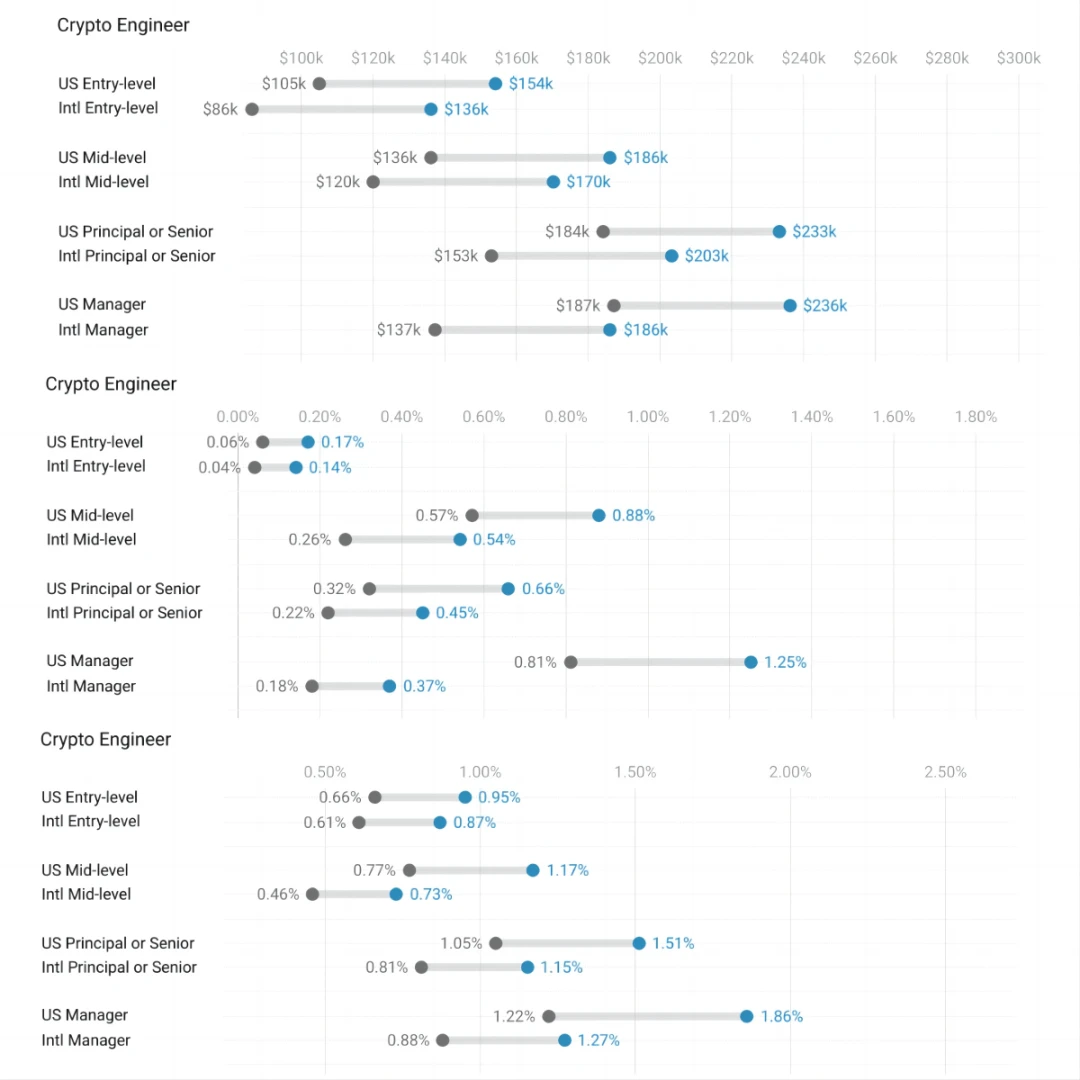 角色:「密码工程」是指专注于协议或区块链开发的工程师,「市场推广」包括销售、营销和业务发展,而薪酬反映包括佣金在内的总目标收入;