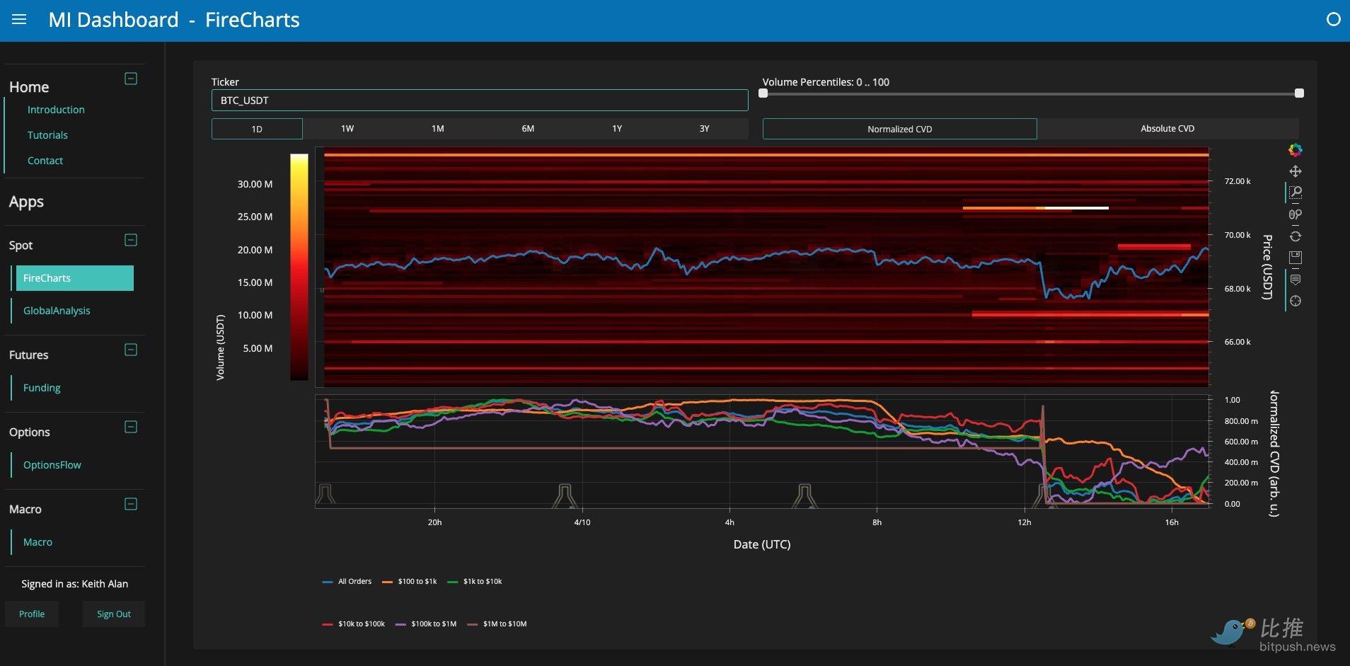 该公司在 X 上的一篇帖子中表示:「FireCharts 分类的 CVD (专有交易指标之一)显示,巨鲸买入了 BTC 的下跌,就这样,比特币回到了 69,000 美元上方,每日蜡烛图再次变绿」。