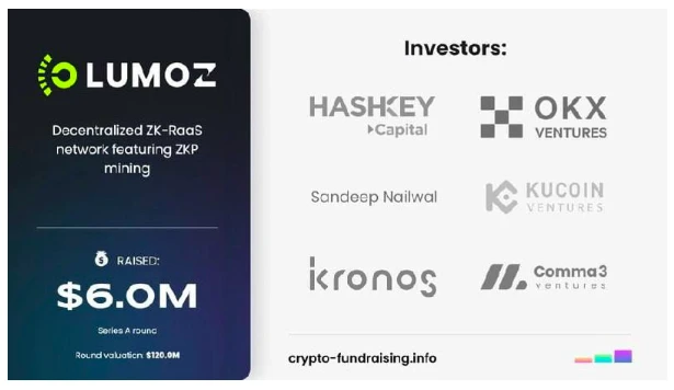 就在 4 月 8 日,Lumoz 对外 披露 其以 1.2 亿美元估值完成 600 万美元融资,OKX Ventures、HashKey Capital、KuCoin Ventures、Comma 3 Ventures、Kronos Ventures、Kernel Ventures 和 Polygon 联合创始人 Sandeep Nailwal 参投。