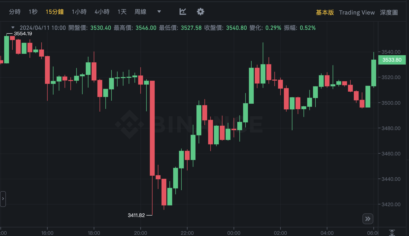 以太币与比特币走势相同,昨晚一度重挫 3%,最低来到 3,411.82 美元,撰稿当下已回升至 3,546 美元,近 24 小时上涨 0.74%。