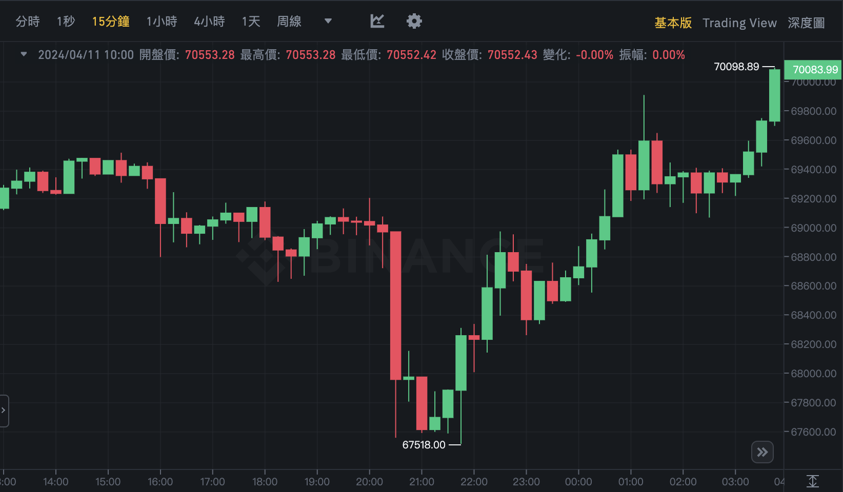 据币安现货市场 数据 ,比特币在通膨数据一公布后,15 分钟内从 68,972 美元下杀 2.05% 至 67,560 美元。但很快比特币很快又𫔭啟震盪上涨,在今(11)晨六点多一度又站上 7.1 万美元,截稿前现报 70,768 美元,近 24 小时上涨 2.03%。