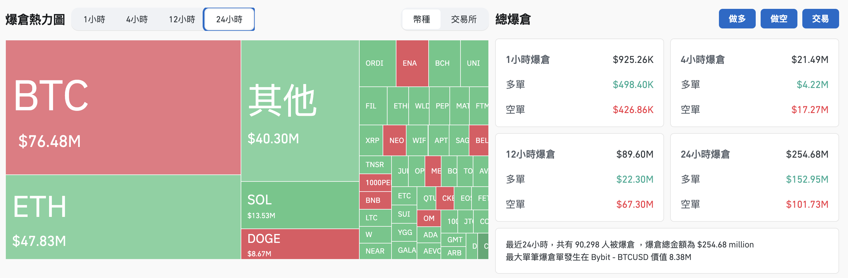 多空双杀,过去 24 小时全网爆仓 2.5 亿美元
