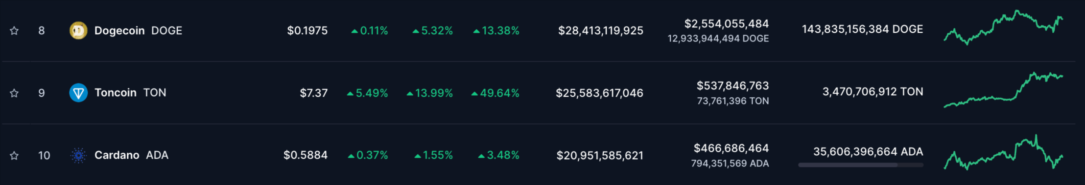 TON冲破7.3镁再历史新高!市值稳坐第9大紧追狗狗币DOGE