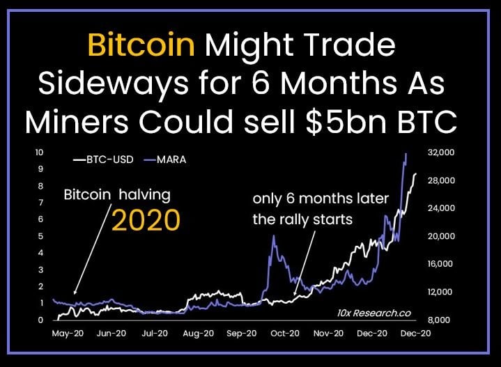 10x Research:矿工减半后恐「抛售50亿镁比特币」;BTC看半年横盘?