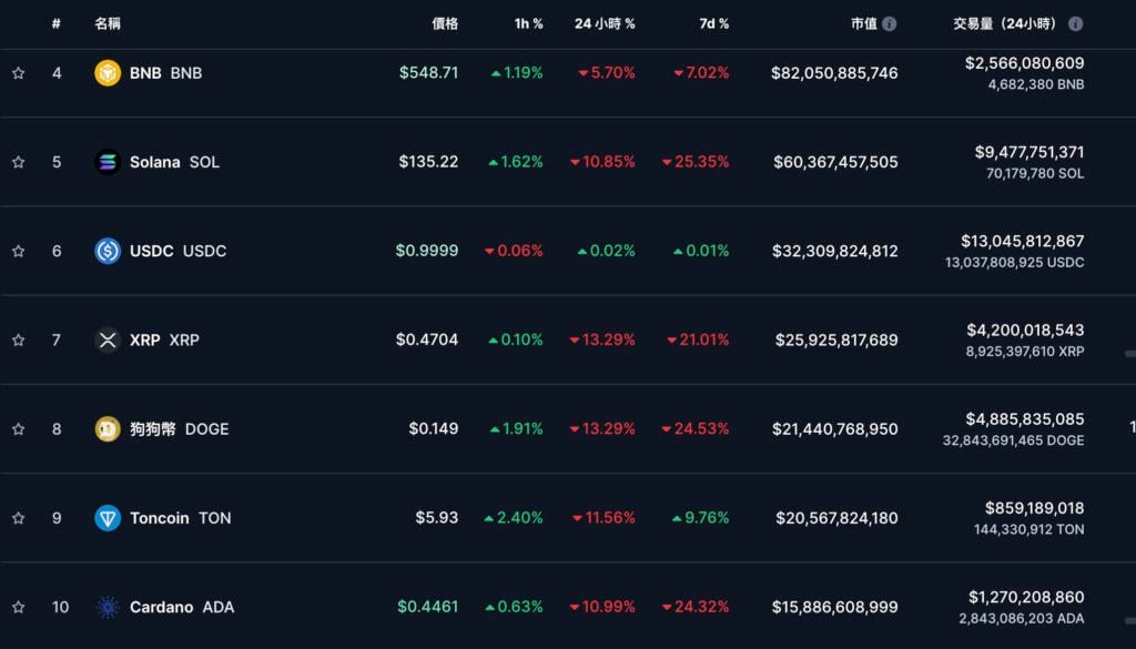 前十大代币价格现况