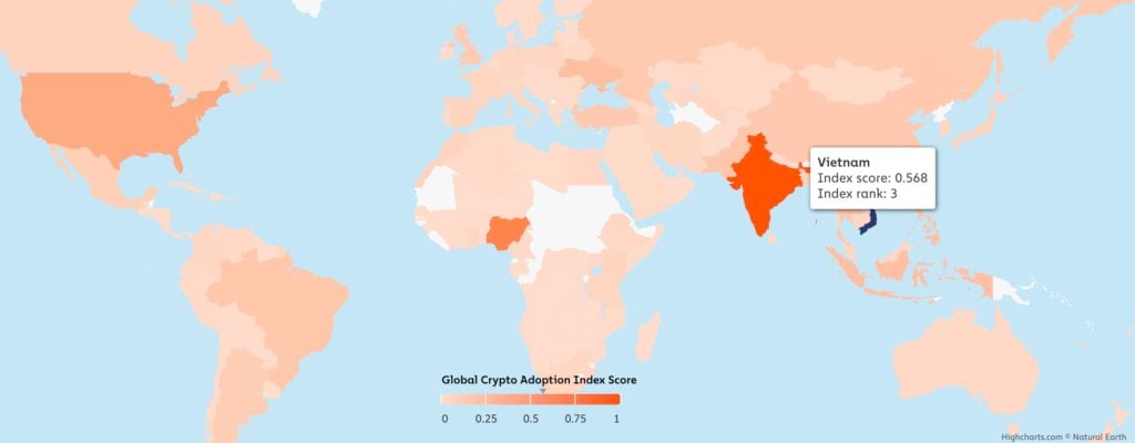 根据据区块链数据公司 Chainalysis 释出的 《全球加密货币采用指数》 报告显示,越南在 2021 年和 2022 年连续两年在加密货币采用方面排名第一。