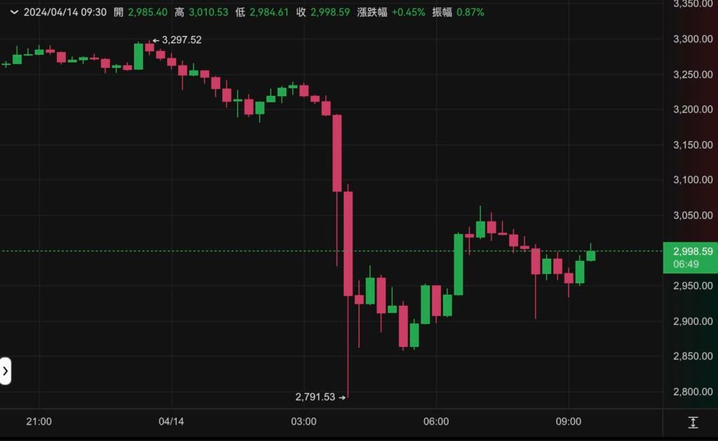 以太坊部分的跌幅则更大,半小时跌超 12%,最低下杀 2,791 美元;截稿前报 2,998 美元,近 24 小时跌幅达 5.8 %。