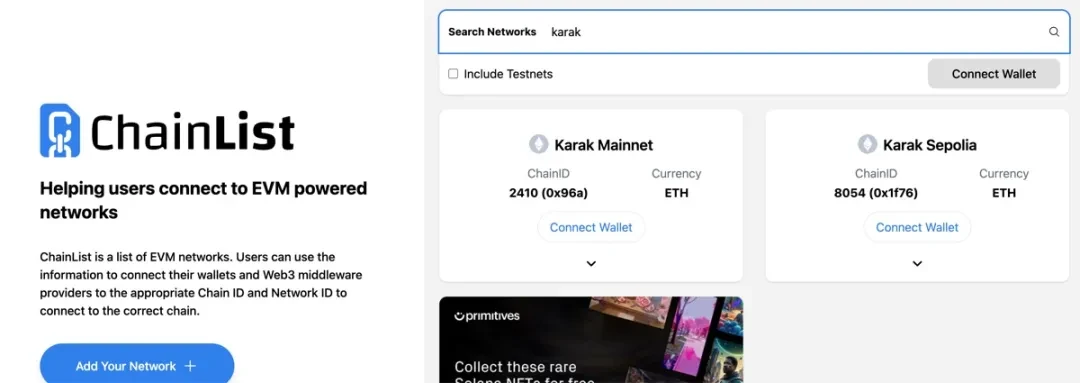 Karak 作为一个再质押平台,与专注于以太坊的 EigenLayer 不同,Karak 提供了一个支持多种资产的多元化平台,包括 ETH、Solana 以及各种 Layer 2 代币等,使其能够在多个区块链生态系统中提供安全解决方案,从而具有更高的多样性和包容性。目前,Karak 已支持以太坊主网、Karak、Arbitrum 等网络。