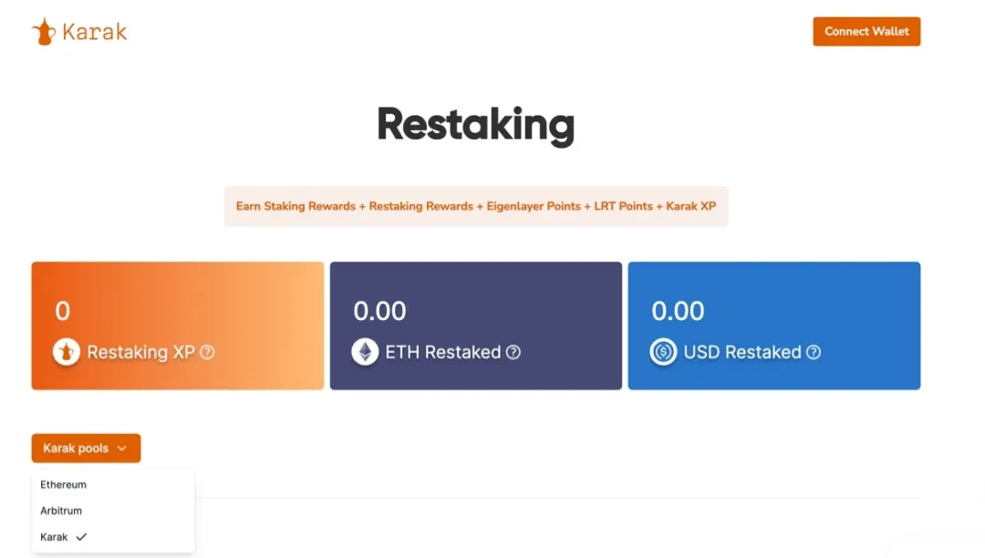 Karak Network 是一个再质押(Restaking)网络,与 Eigenlayer 等再质押项目类似,同样采用积分模式来激励用户再质押,从而获取多重收益。