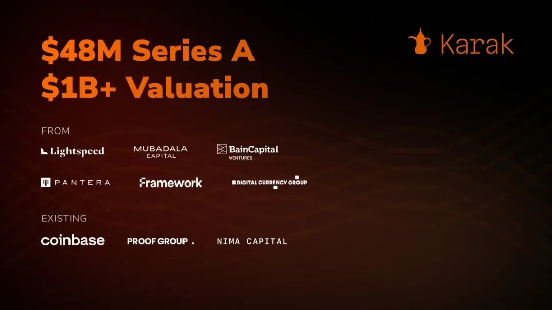 2023 年 12 月,Karak 宣布获得了 4800 万美元的 A 轮融资,由 Lightspeed Venture Partners 领投, Mubadala Capital、Coinbase 等机构参投,其中 Mubadala Capital 是阿布扎比第二大基金,本轮融资 Karak 估值超过 10 亿美元。
