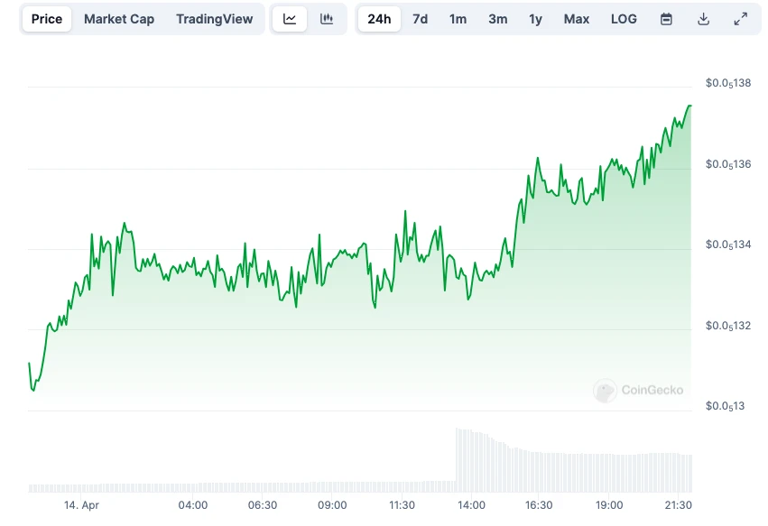 HTX 的 24 小时价格走势。来源:Coingecko