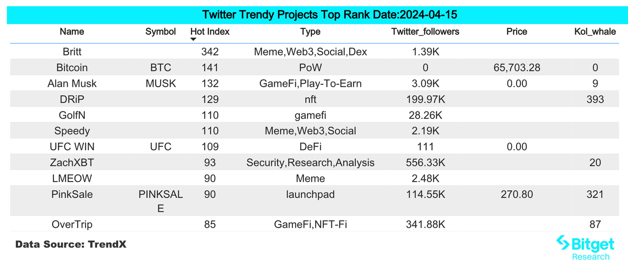 1)板块异动:新一代热门 MEME(SLERF、MEW、BOME、WIF)