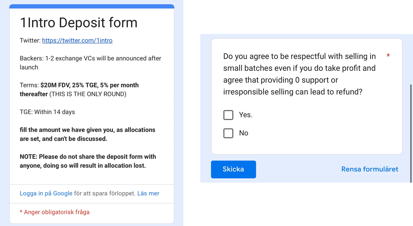 知名链上侦探 ZachXBT(@zachxbt)在 1 intro 的官推下贴脸开大,爆出 1 intro 向 KOL 们募资的私募轮中各类文件和表单,其中明确写道: