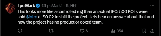 若按照 1 intro 代币经济设定的总量 10 亿枚代币计算,给 KOL 的价格确实为 0.02 美金,链上侦探这波实锤的可能性非常高。
