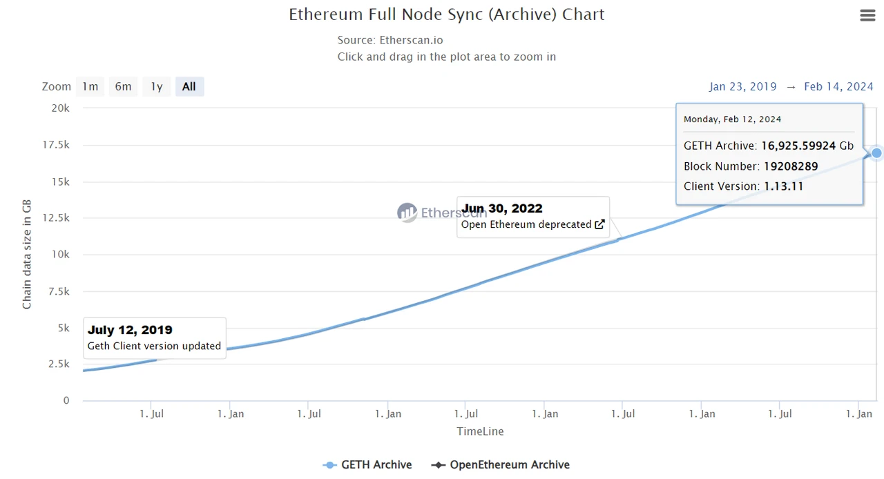 状态爆炸是指,以太坊全节点积累的历史和状态数据越来越多,运行全节点需要的存储资源越来越大,运行门槛提高,致使网络节点中心化。
