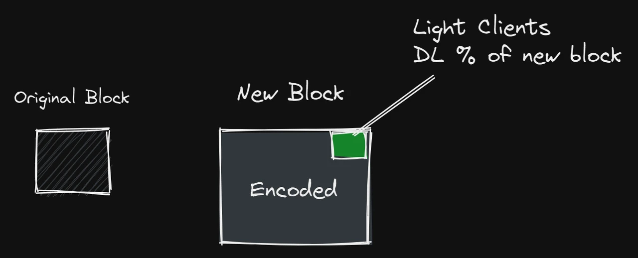 因此,需要某种方式,使全节点在同步以及验证区块数据时,无需下载所有数据,只需要下载区块的部分冗余片段即可。