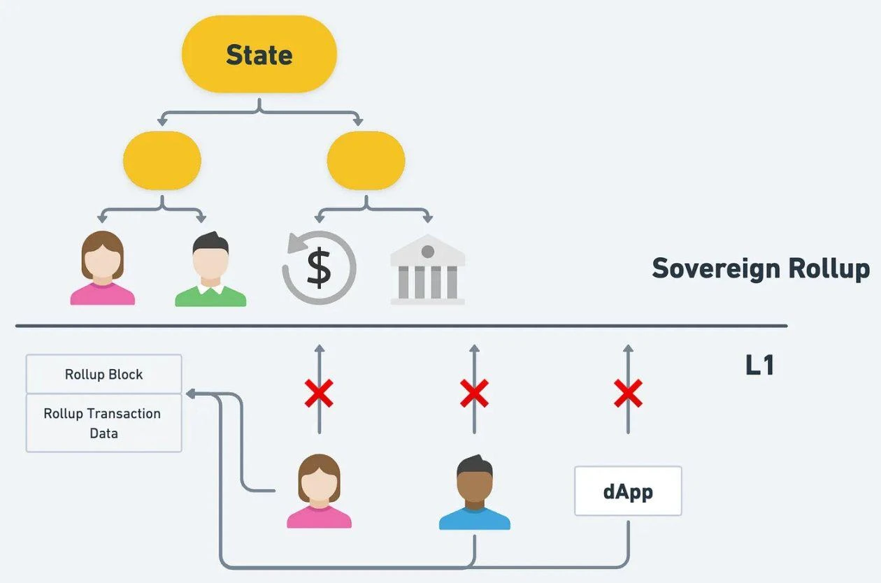 Sovereign Rollup 单纯将 L1 作为 Data Availability Layer,把资料上传到 L1,仰赖 L1 确保资料可得且资料排序不会改变。