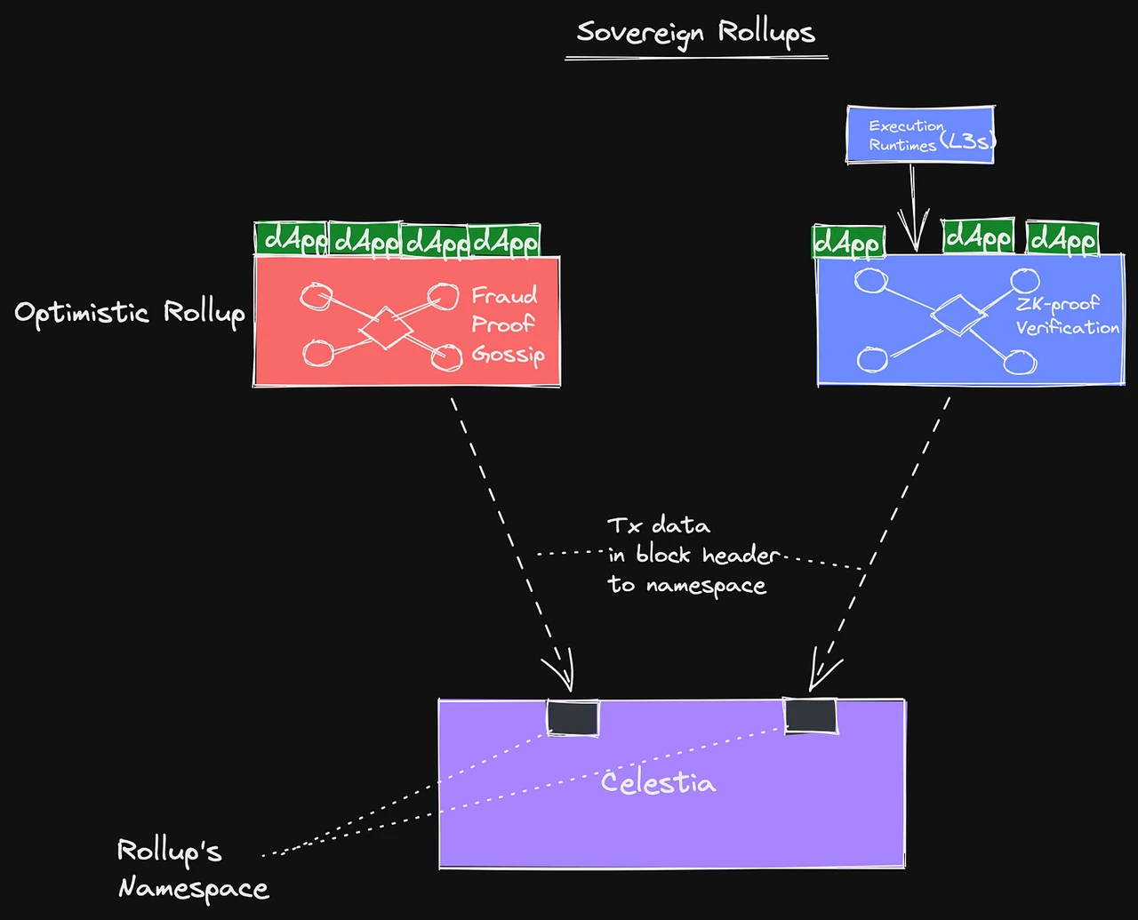 Sovereign Rollup 便是拿掉 Settlement Layer(或是说将自己变成 Settlement Layer),单纯将 L1 作为 Data Availability Layer 使用。