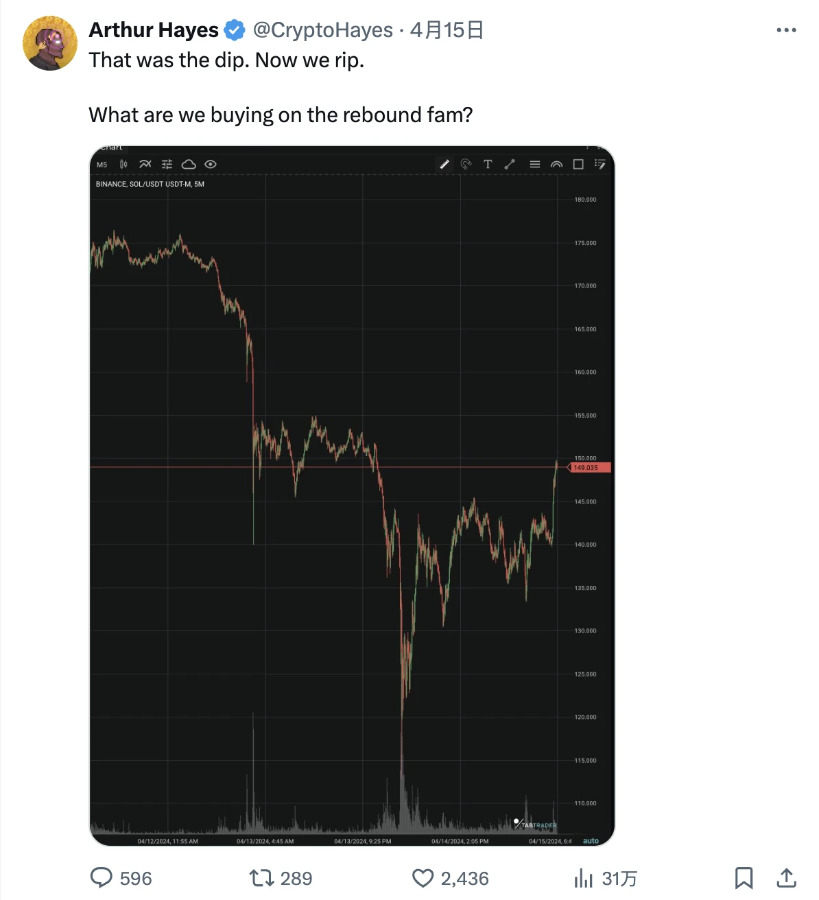 4 月 15 日,Arthur 于 X 平台发文喊道:“ 底部已至,开冲! ”