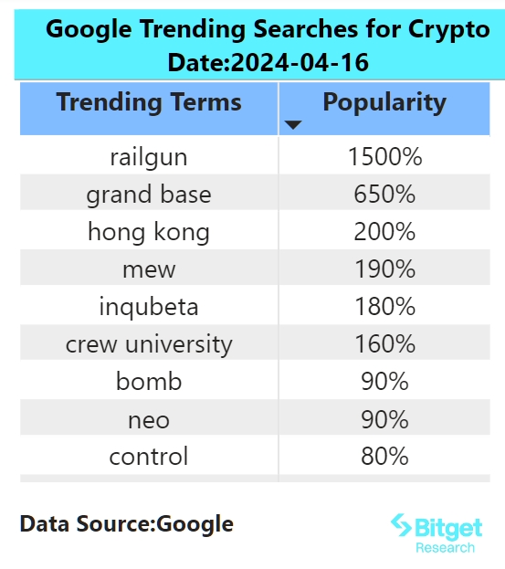 用户热搜代币&话题为: MEW、Railgun(RAIL)、GCR(传奇交易员)