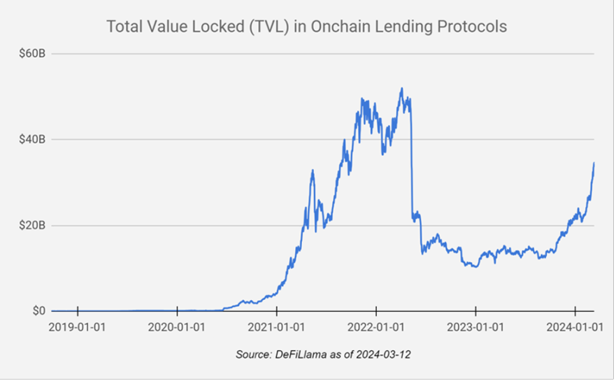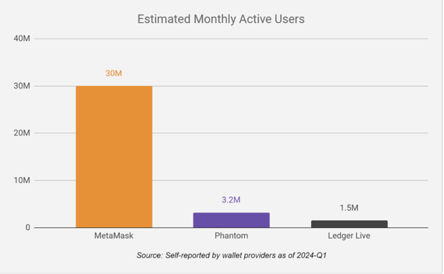 根据最近的估计,全球约有 4.2 亿人持有加密货币,其中许多人可能从未或很少与去中心化应用程序互动。硬件钱包制造商 Ledger 报告称,其 Ledger Live 软件每月拥有约 150 万活跃用户,而软件钱包提供商 MetaMask 和 Phantom 分别声称每月活跃用户约有 3000 万和 320 万。再加上每日约 50-100 亿美元的 DEX 交易量、价值约 300-350 亿美元的链上借贷市场锁定资本以及约 1300 亿美元的稳定币市值,这些数字可以反映出上述 5 个应用程序的当前采用水平。它们相对于传统金融和金融科技而言还很渺小,但仍然意义重大。诚然,这些数字应该放在近期加密资产价格飙升的背景下来看,但随着区块链变得越来越合法化(现货比特币 ETF 的批准以及欧洲的 MiCA 等量身定制的监管框架就是最近值得注意的例子),它们也可能继续吸引新的资本和用户,特别是在与传统金融资产和机构日益融合的背景下。