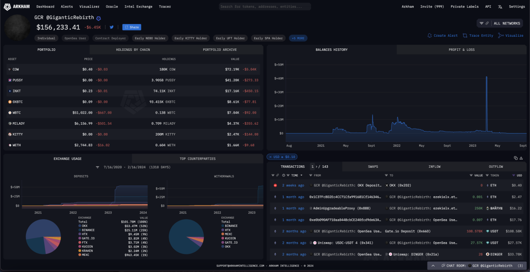 在 2023 年的前三个月,GCR 投入资金购买了「Milady」这个 NFT 项目的 300 多个代币,尽管一些 Crypto 圈内人觉得这个项目有些古怪。大约三个月后,当埃隆·马斯克在推特上发布了一张有关这个 NFT 项目的表情包后,GCR 卖掉了手头上大约一半的代币。即便如此,他仍然在他的公开钱包地址 ezekielx.eth 中持有价值超过 89 万美元的 Milady 代币。