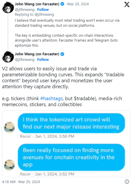 作为 friend.tech 创始人 Racer 聊天群的参与者,加密货币投资者 John Wang 总结了 V2 将带来的许多新功能,以增强用户参与和个性化。让我们提前看看有什么新特性。