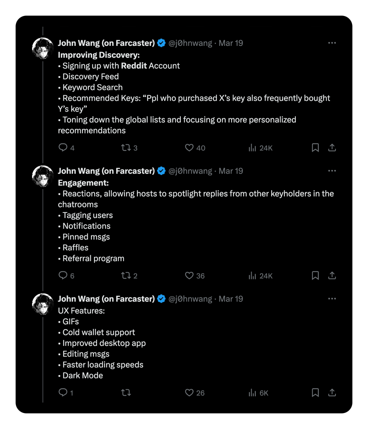 聊天室整体上将变得更有活力,将引入反应和标记、增强的通知系统、置顶消息、抽奖和推荐计划,后者完全符合加密货币的发展和与人们互动的方式。