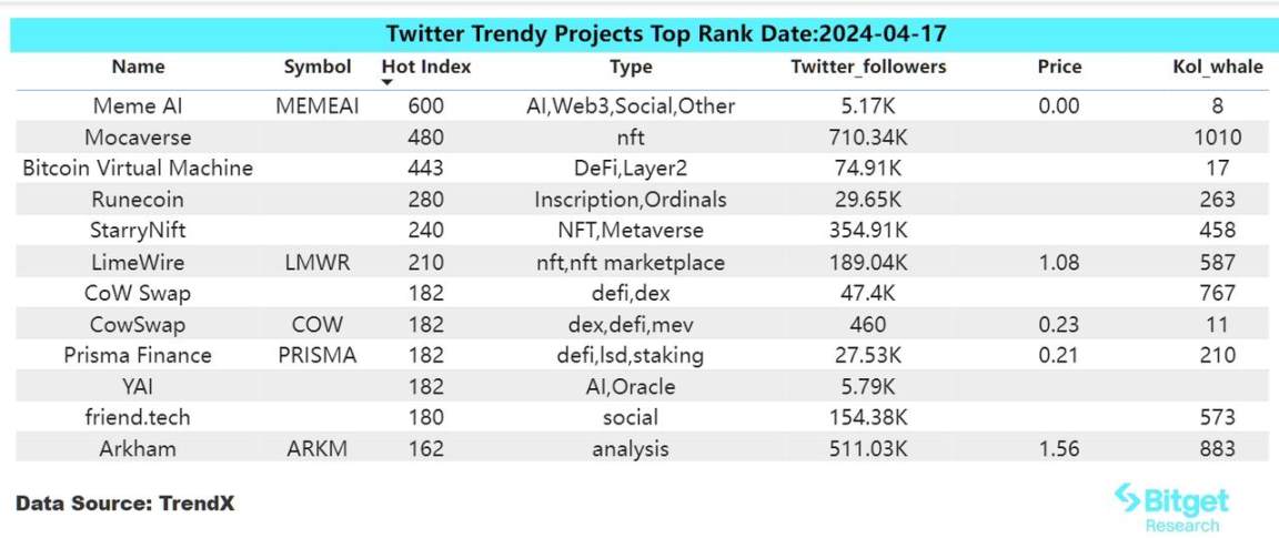 1)板块异动:新一代热门 MEME(SLERF、MEW、BOME)