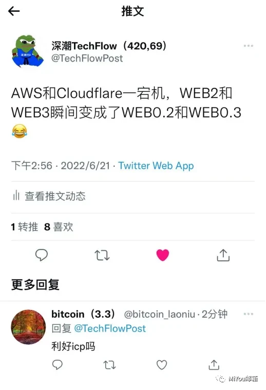 发生在 2022 年 6 月 21 日的国外云服务商 AWS 和 CLOUDFLARE 的故障造成大量Web3.0 项目的中断,有人戏称这些中心化的数据中心一停机,Web3.0 就变成 Web 0.3 了。这也显示出了硬件去中心化的重要性,当前云的基础设施基本都是中心化的。