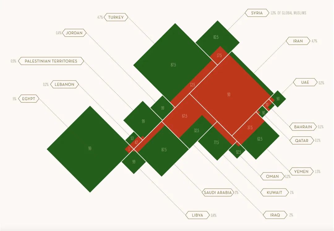 - 不可能三角,世俗化、宗教化和军事独裁。借鉴以太坊的不可能三角,中东也存在不可能三角,即任何一个国家无法保持世俗化的同时,避免军事独裁,比如埃及自纳赛尔以后,只有一任穆兄会领导的民选政府,如果按照民主原则组织投票,那么黎巴嫩和伊拉克就是明证,而伊朗实现了神权共和国,在民选政府之上叠加了一层宗教体系,更是举世罕见。