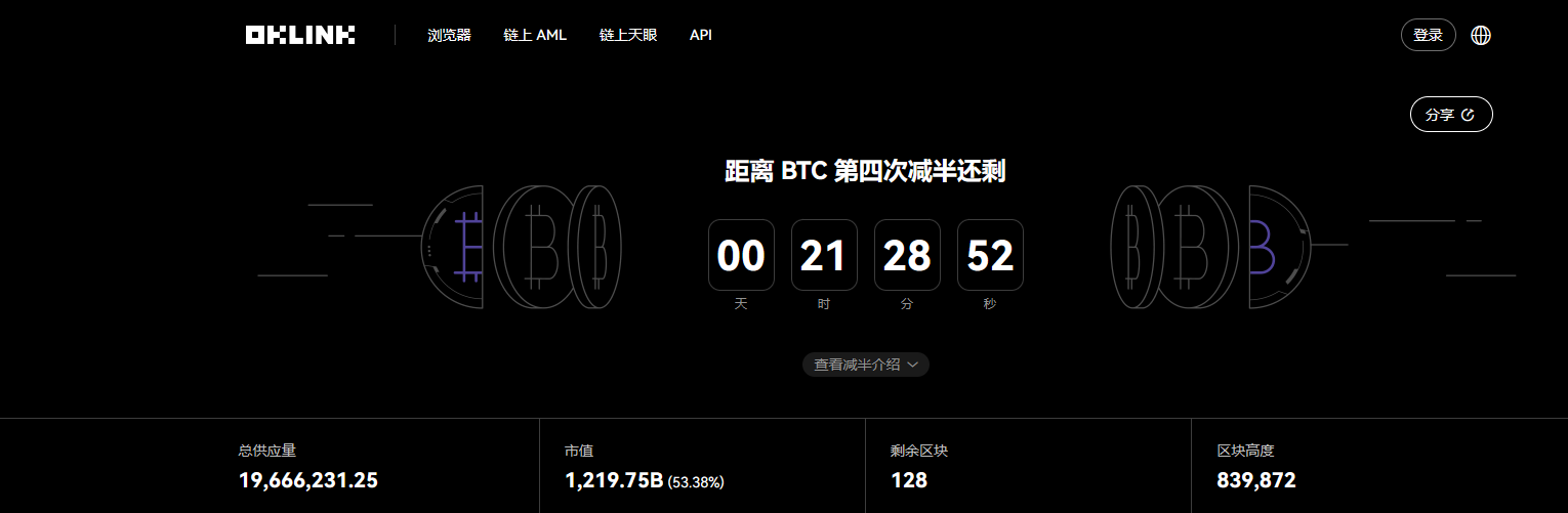 颇为戏剧性的是, 截至发文时,OKLink 数据显示距比特币第四次减半已不足 22 小时,但市场却以一种「资产提前减半」的姿态给大家泼了一盆冷水,让市场预期愈发悲观 。