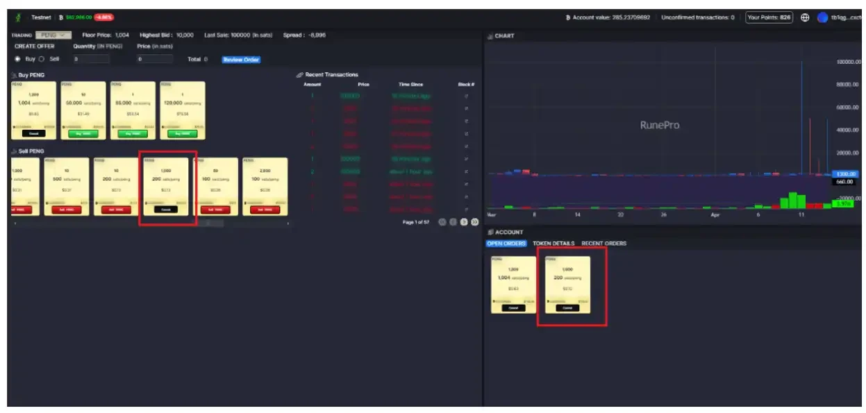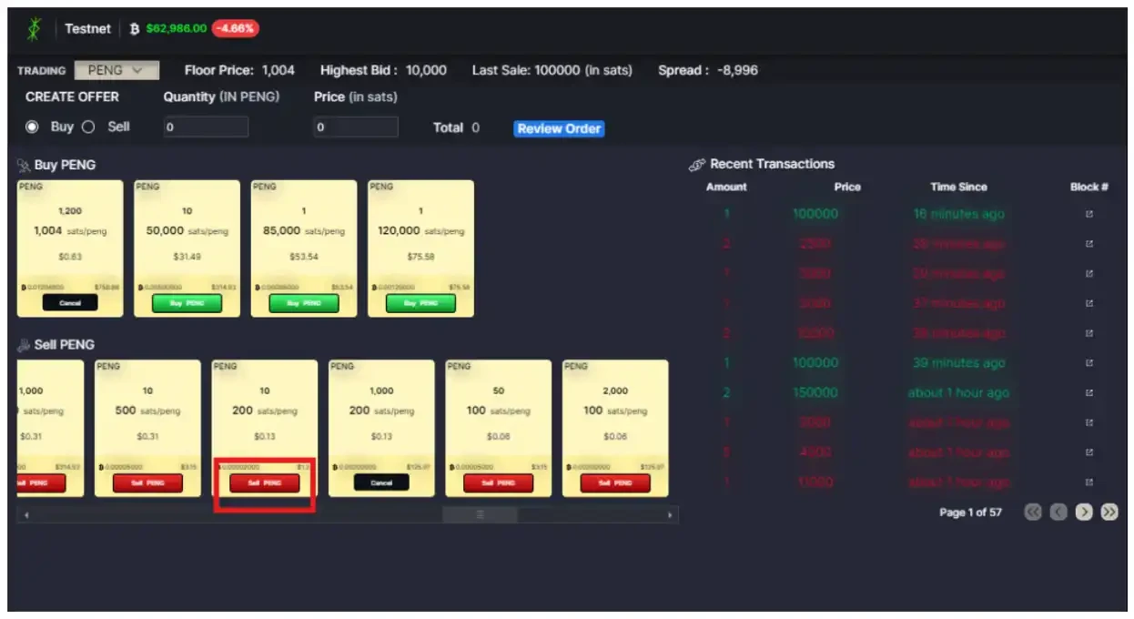 输入您想要出售的代币数量和每个代币的 sats 价格。检查订单并签署交易(您需要创建与列表相同的转账金额)。一旦完成,列表将以以下方式显示。