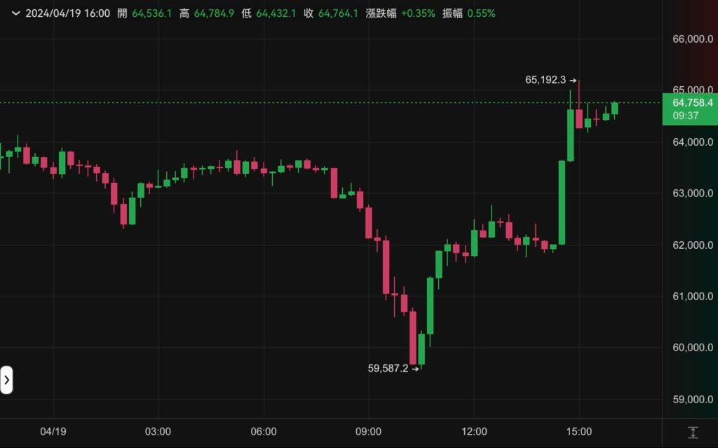 中东紧张局势加剧,造成台股今日收盘下跌 774 点创下台股史上最惨纪录。但另一方面,比特币一度跌破 6 万美元后又快速反转冲上 6.5 万。