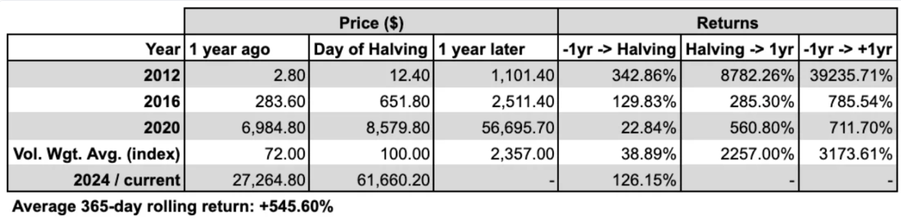 鉴于之前只有三次减半,所以很难从过去的表现中得出具有统计学意义的结论,以确定这是否是一个可交易的事件。然而,从结构上看,从供应的角度来看,这无疑是一个利好事件。