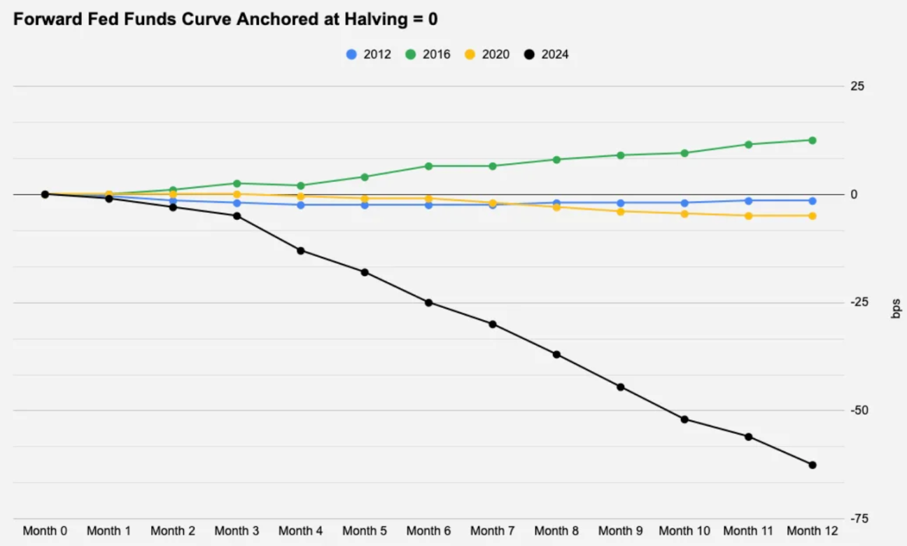 很明显, 2024 年的减半是一个异常值,几乎有 3 次降息被定价进去,或者更简单地说,就是市场已对任何形式的利率变动有所预期。