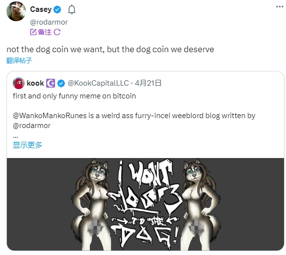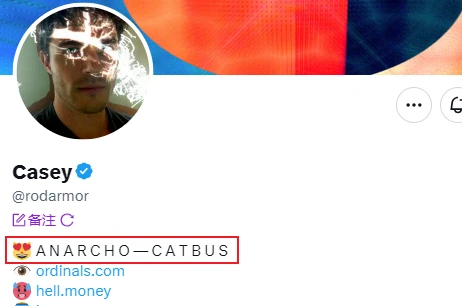 概念:Ordinals 创始人 Casey 个人简介中的一行,因带有猫表情被称为符文猫。