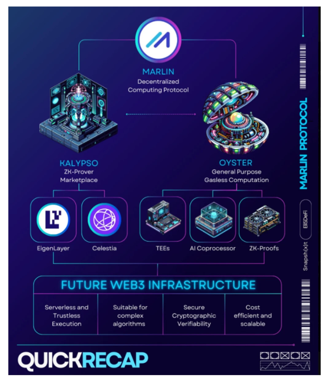 Marlin 的定位是「基于可扩展的协处理器的去中心化计算协议」,即通过去中心化节点网络将计算外包给无需信任的服务器,同时确保计算结果的安全、正确,从这个角度上看,它本质上可以被视为一个去中心化云算力基础设施和容器平台: