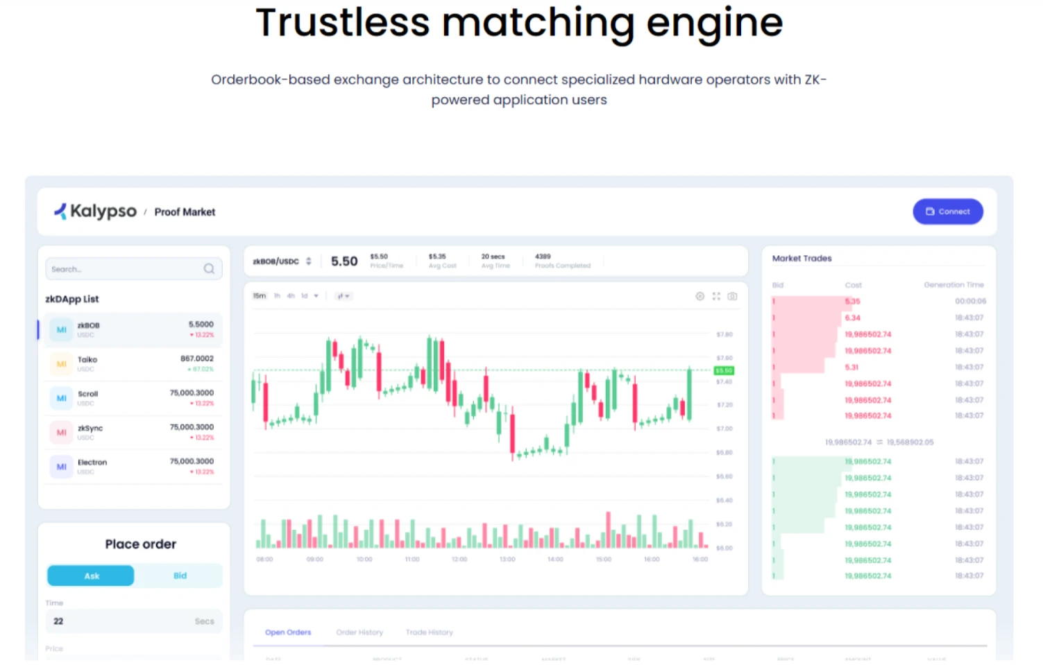 与此同时,它又作为基于订单簿的市场运作,优化了 ZKP 生成请求与可用计算资源的匹配(可匹配 Taiko、Scroll、zkSync 等一众 ZK 网络的计算需求),从而可以大幅提高效率并降低成本。
