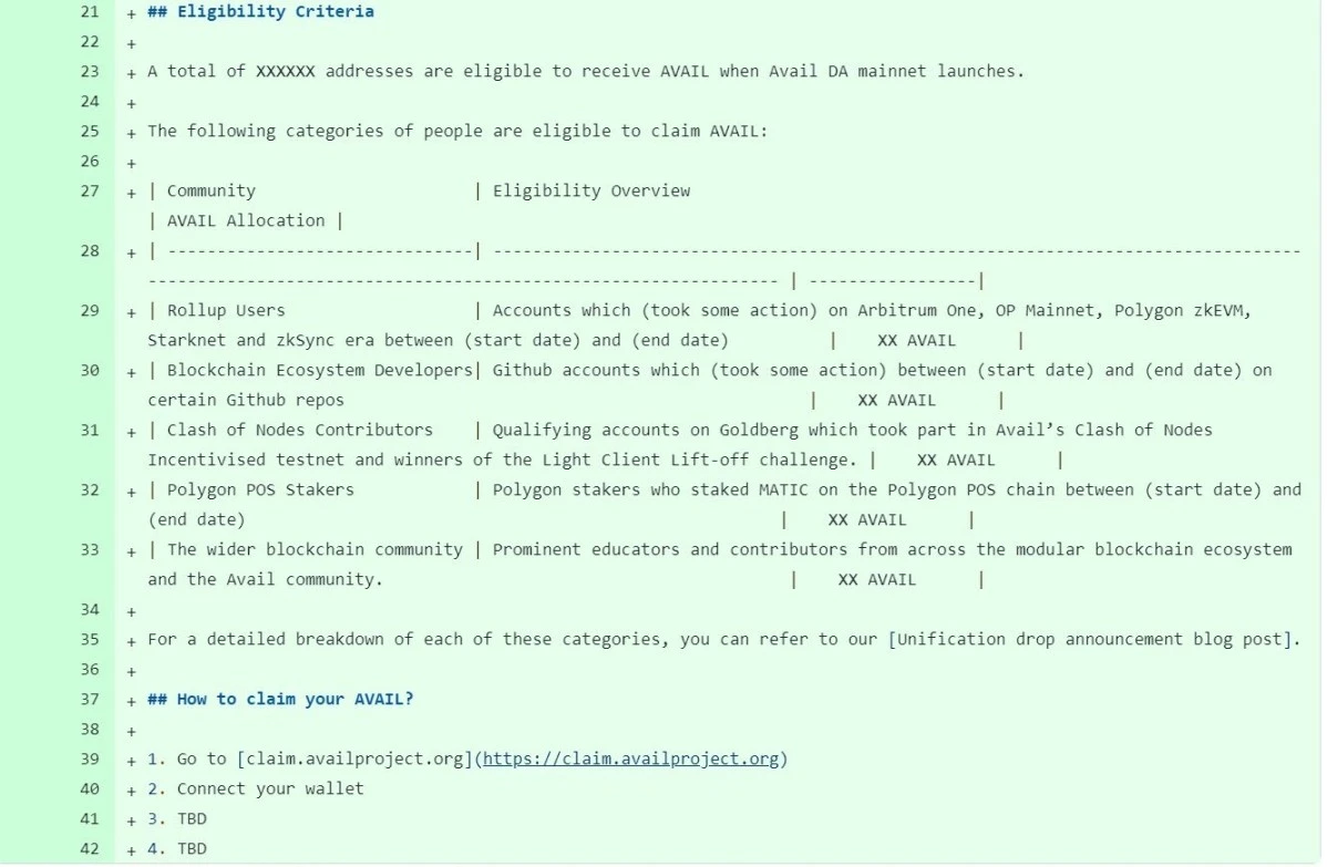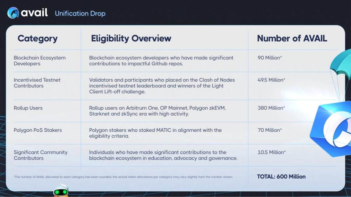 Avail 正式的空投标准