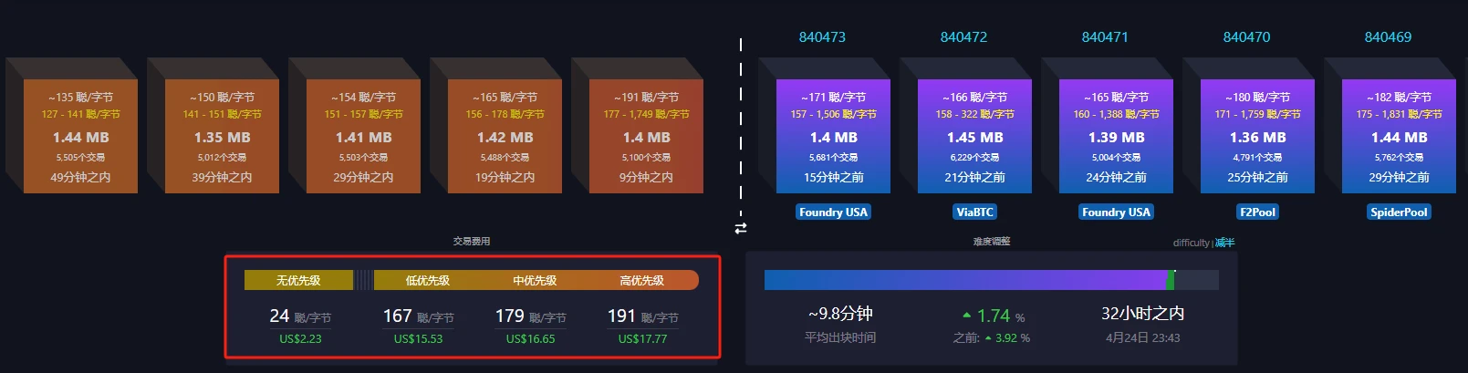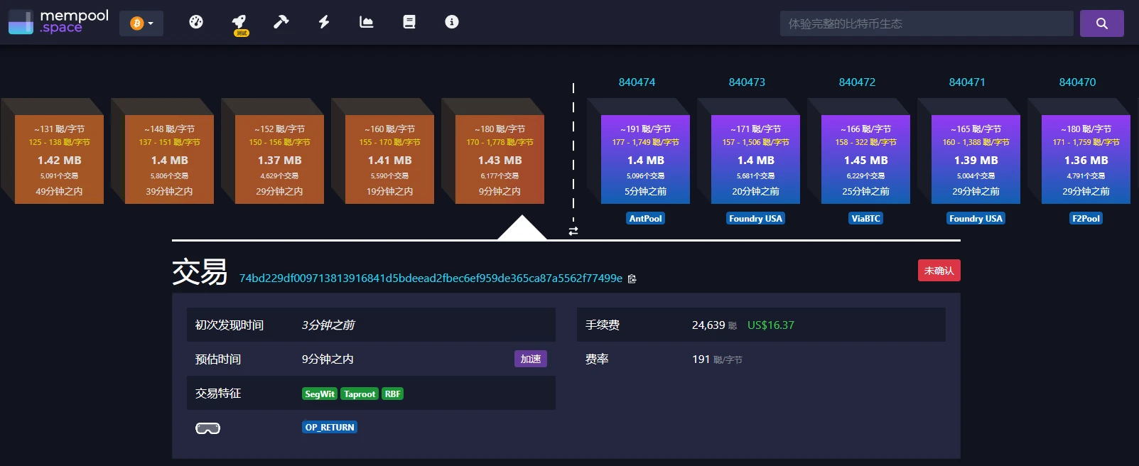 工具链接: https://mempool.space/zh/