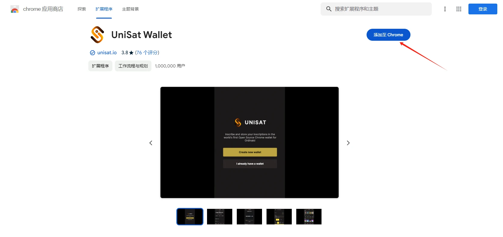 STEP 1. 在谷歌应用商城中下载 UniSat Wallet 插件( 下载链接点击此处 )