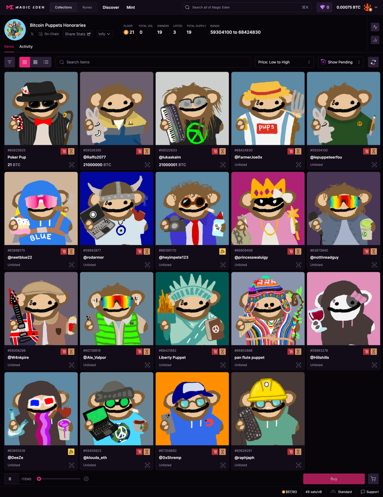 Bitcoin Puppets 是一个由 12 岁的孩子在 MS Paint 中手绘的 10001 个独特的 PFP 的集合,现在已经席卷了Web3。在发布时,其地板价为 0.408 BTC(26, 775 美元)。
